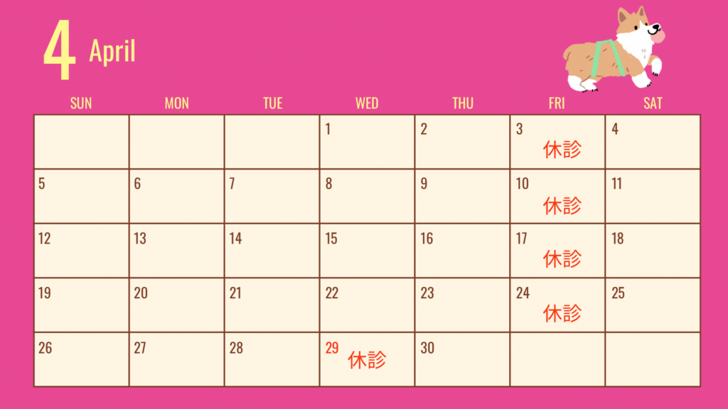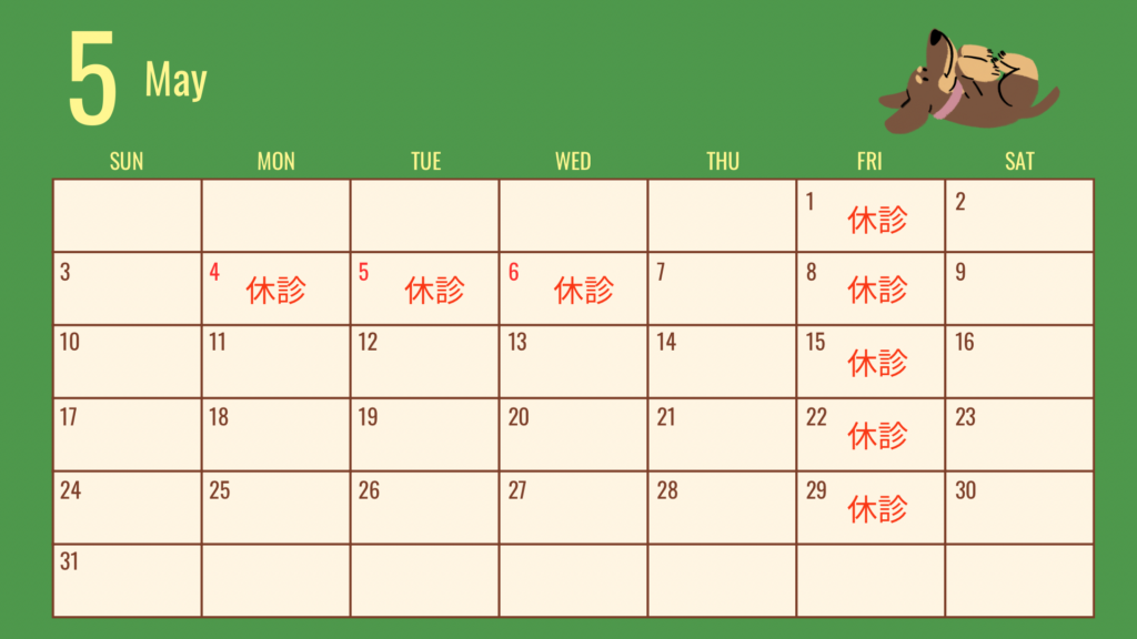 下記の日程は休診となりますので、ご来院の際はご注意ください。